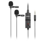 The BOYA BY-M1DM is a Dual Lavalier Universal Microphone, with a single 1/8″ stereo connector, it can be used with smartphones,