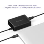Tronsmart U5P Desktop PD 60W Power Delivery 5-Port Charger .USB-C Power Delivery port, output 30W (5V/3A, 9V/3A, 15V/2A), charges MacBook at full speed.